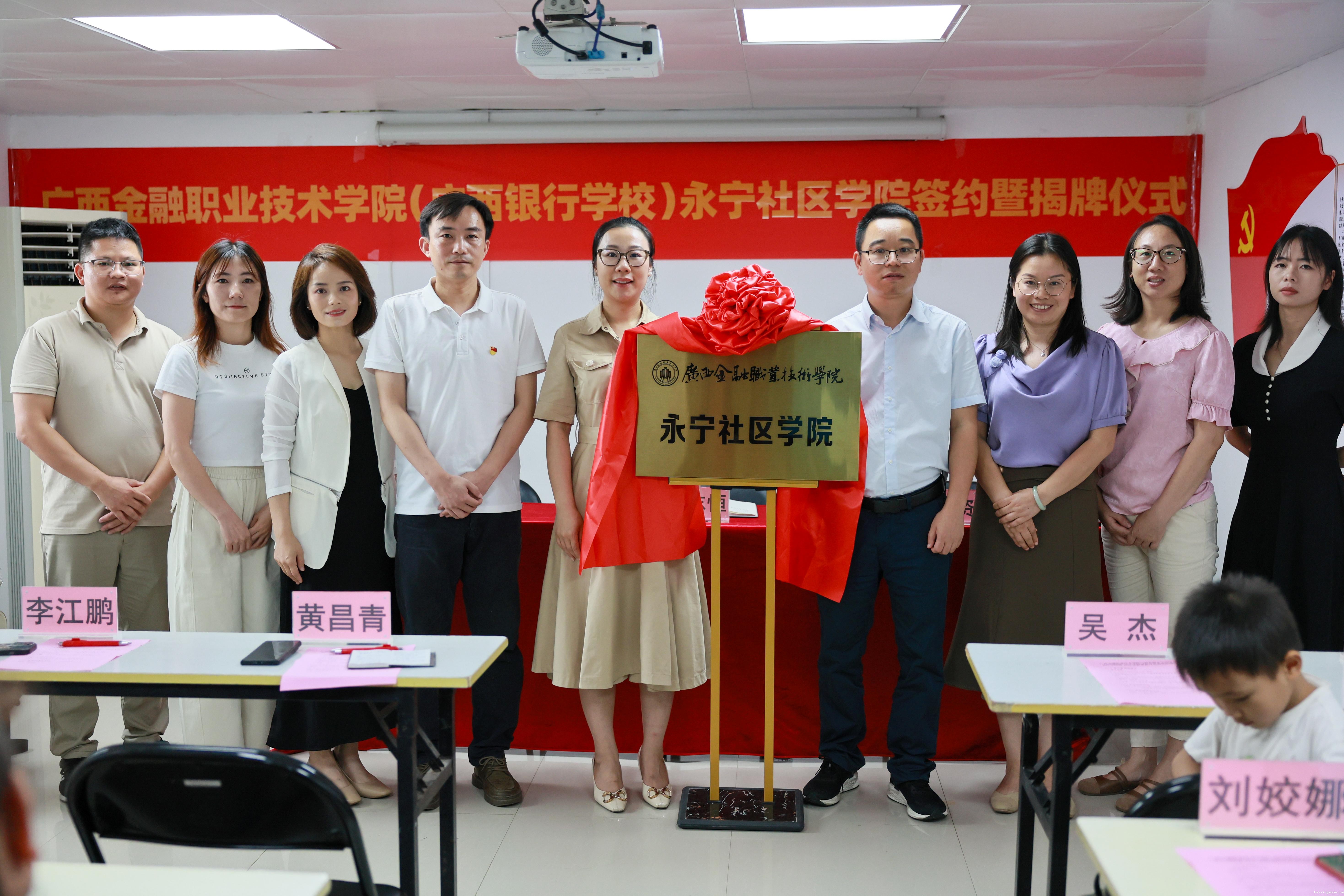 5月17日下午,我校与南宁市西乡塘区永宁社区举行社区学院共建签约暨揭牌仪式。西乡塘区华强街道纪工委书记黄昌青、永宁社区党总支书记罗志恒等领导及我校师生、居民代表共 100 余人出席活动,仪式由永宁社区副主任盘裕群主持。