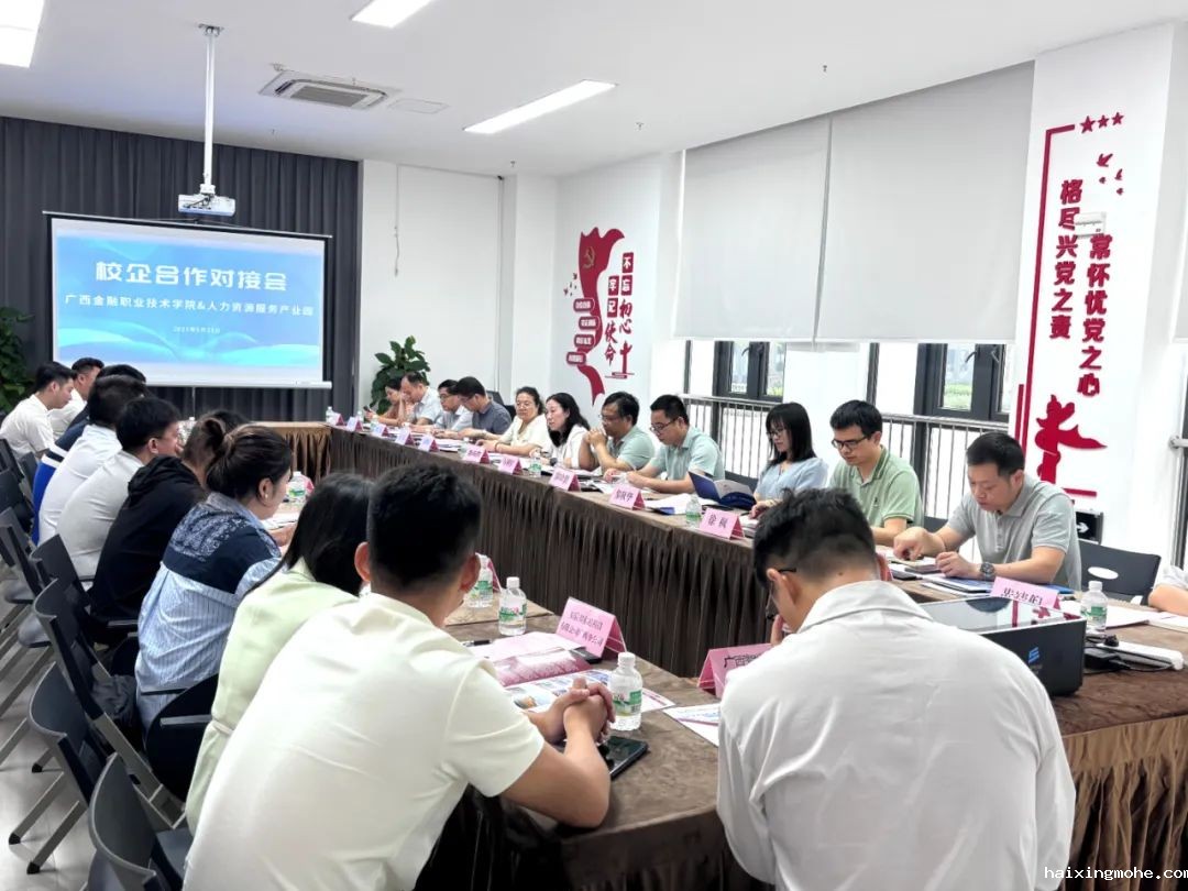 在广西(南宁)人力资源服务产业园、南宁市人力资源服务行业协会精心组织下,广西跑腿快车电子商务有限公司、广西四方汇通人才服务有限责任公司、南宁轨道数智科技有限公司、南宁市人力资源服务行业协会等13企业参与校企合作对接座谈会。在座谈会上,校企双方围绕“企业人才需求与高校人才培养的精准对接”主题展开深入交流。在人才培养方面,双方就“订单班”培养、实践教学资源开发等达成合作意向;在就业服务方面,重点探讨了实习就业通道搭建、“金融人才服务驿站”设立等创新举措。莫海燕校长表示,学校始终坚持以就业为导向办学,充分发挥学科专业优势,主动对接产业需求、优化人才培养模式,未来也将持续深化产教融合、校企合作,将党中央、国务院关于促进高校毕业生就业工作的部署要求落实为具体行动。